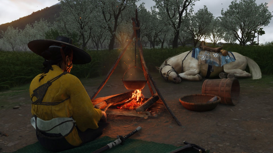 Ghost of Yōtei arranca con una estructura que invita a explorar sin apuro. Apenas avanzás en la caza del primer miembro de los Yōtei Six —la Serpiente— vas a poder quedarte con un caballo y, como en Tsushima, renombrarlo o cambiarlo por otro. No pases por alto esa misión secundaria, que está algo oculta: cerca del manantial de la Sombra de Yōtei hay un establo donde un colono es atacado por forajidos de Lord Saitō; si lo ayudás, te ofrece tres monturas entre las que podés elegir.